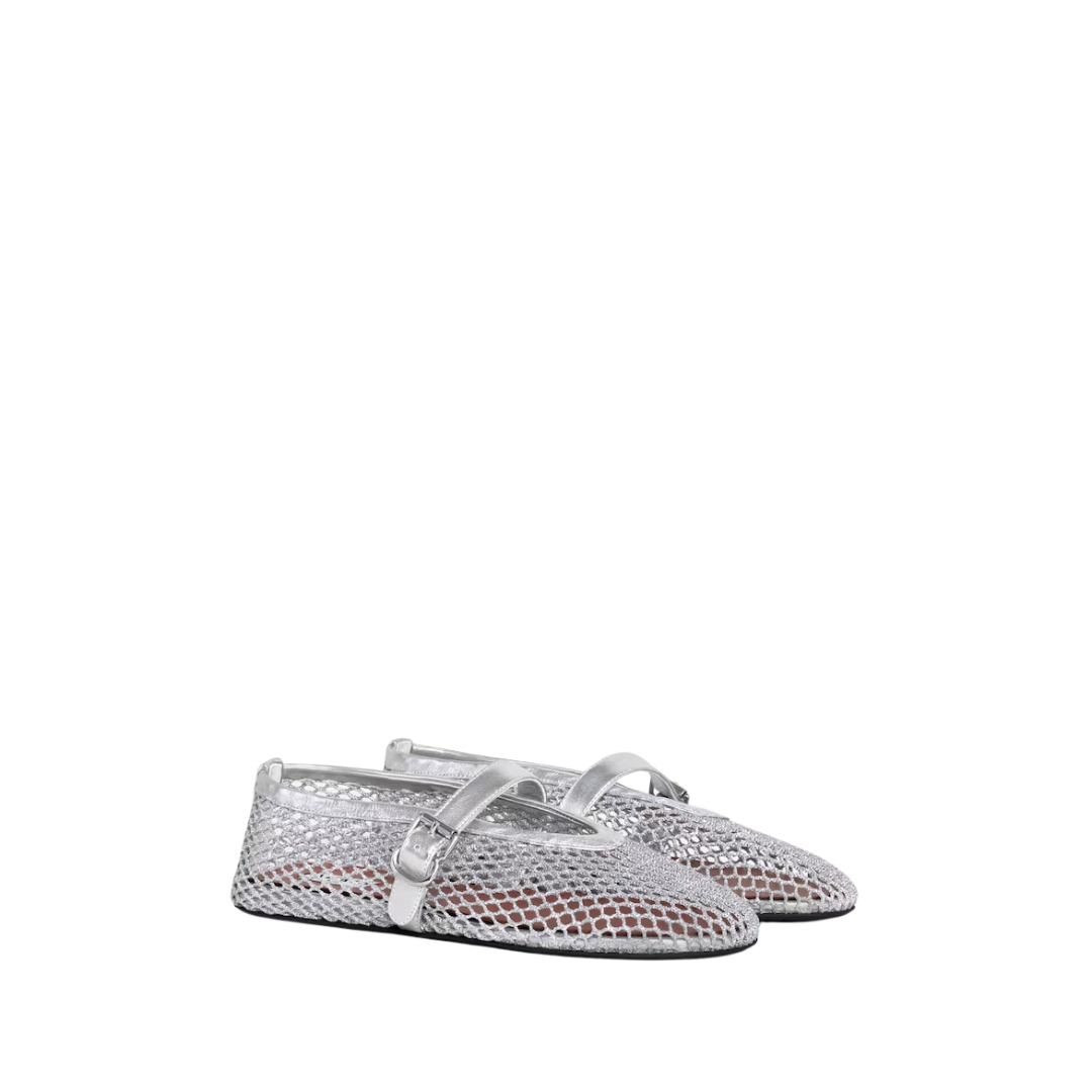 ALAIA BALLET FLATS IN LAMINATED FISHNET silver